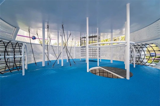 下层的小基地隐秘而安静,向外延伸的爬网可以攀爬上“星球”,收集着敢于冒险的勇气。