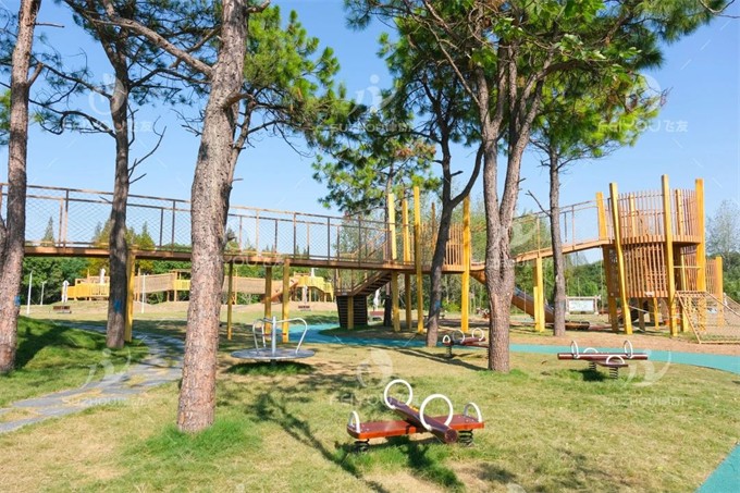 结合周边树林环境,将游乐设施与森林景观相融合;其目的是让儿童在野外与自然的环境中进行真正的沟通。