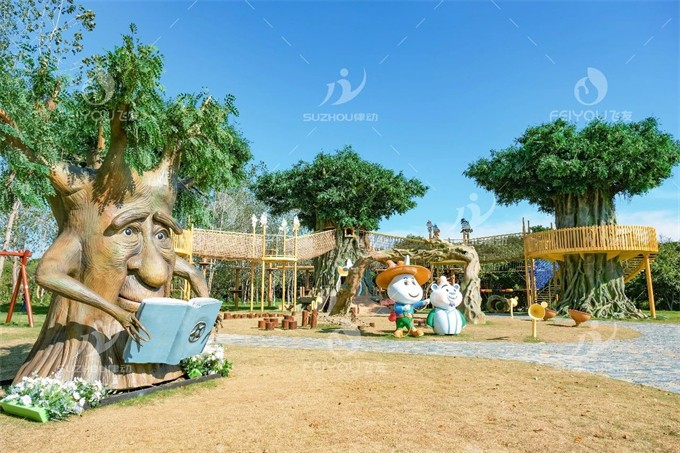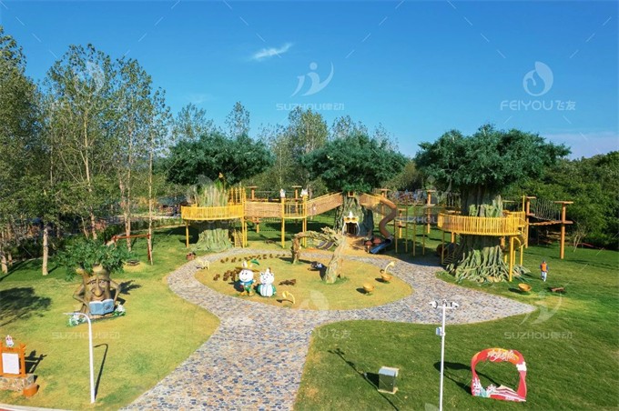 丘陵和山谷的地形充满了绳索矩阵和树屋栈道,小朋友可以在探险中,享受攀登和玩耍的乐趣。