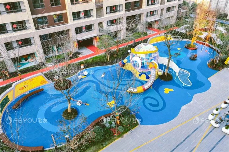 位于扬州金地华著小区内的悟空乐园,中心位置矗立着一座独特的悟空组合滑梯。它右手高举,目光远眺,仿佛在与小朋友们嬉戏互动,又似在默默守护着这片儿童的天堂。