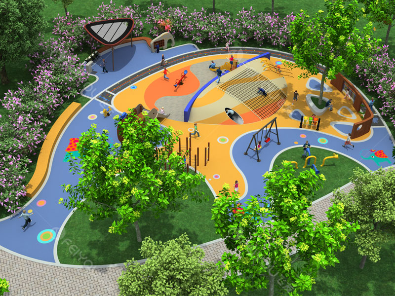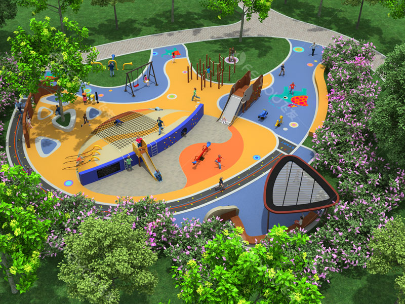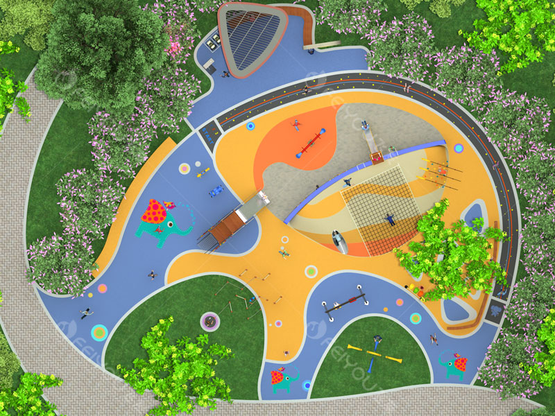 本设计以“森林拓展乐园”为出发点,以树木花草为衬托,通过滑梯、秋千、单双杠、传场筒、跷跷板、摇摇乐等功能设备,使幼儿身体的各个领域均得到均衡发展。项目需求