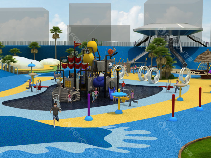本设计以“海盗船”滑梯为核心组件,以海洋、沙滩为背景,并配置功能各异的造型玩具,培养幼儿认识大海的欲望,从此开启海洋梦幻之旅。