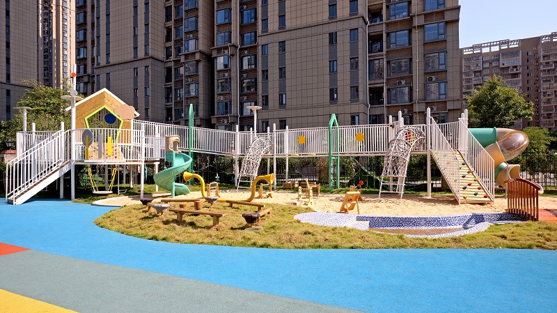儿童安全是核心诉求,高品质滑梯在防护设计上考虑周全。滑梯滑道采用“流线型弧度”设计,入口处有30cm高防摔挡板,滑道末端设置缓冲区域,避免儿童冲出受伤;普通滑梯滑道弧度突兀,末端无缓冲,易发生磕碰。平台护栏高度不低于110cm,间距严格控制在11-15cm之间,防止儿童头部卡入;劣质滑梯护栏高度不足或间距过大,存在极大安全隐患。此外,所有边角都经过“圆角打磨+包胶处理”,触感光滑无毛刺。
