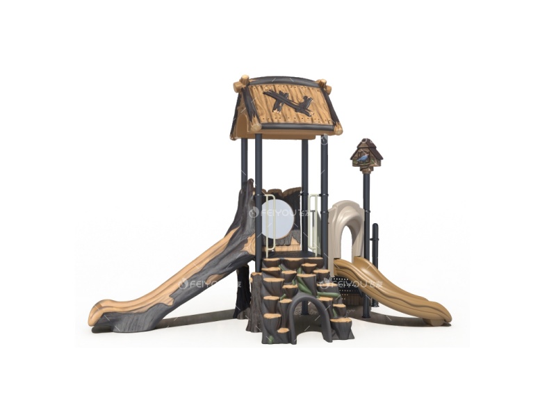 丛林穿越系列组合滑梯采用全新工艺,视觉自然生态,取代玻璃钢,高性价比更环保