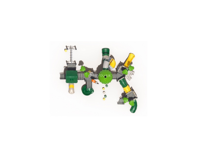 | 产品尺寸 | 森林探险组合滑梯FY049-01 外形尺寸:1077*882*517cm|使用年龄段:3-12岁 |