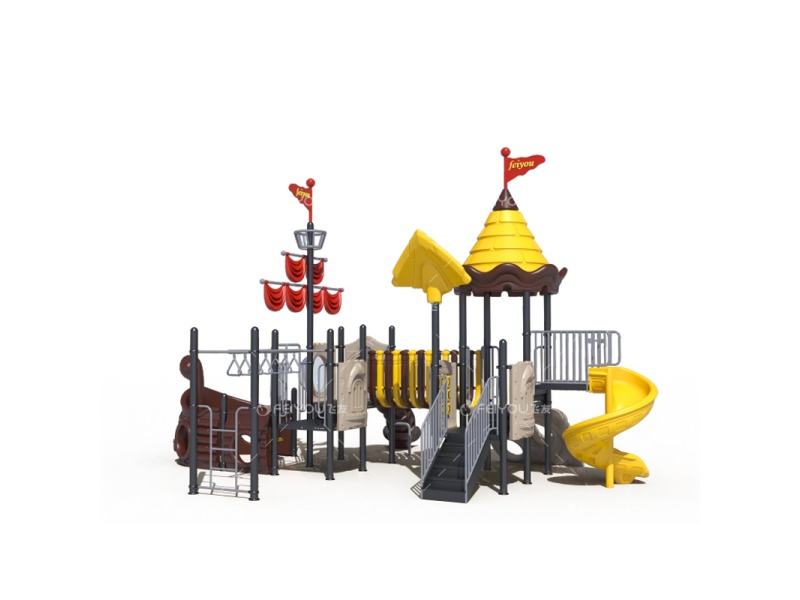 | 产品尺寸 | 海盗船组合滑梯FY076-02 外形尺寸:954*746*514cm|使用年龄段:3-12岁 |